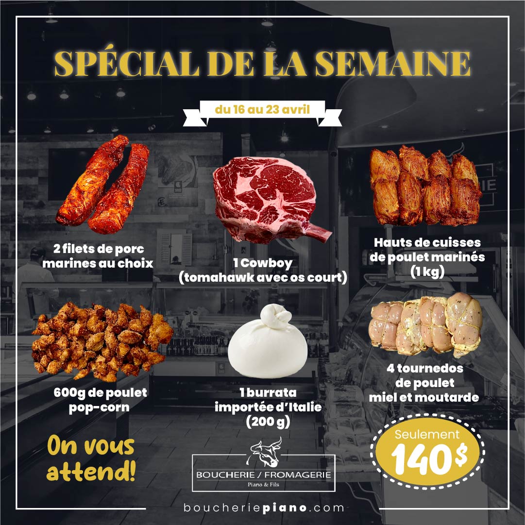 À la Boucherie Piano & Fils, économiser du temps, rien de plus facile! Faites préparer votre commande en ligne dès maintenant et passer nous voir pour la récupérer au moment de votre choix.